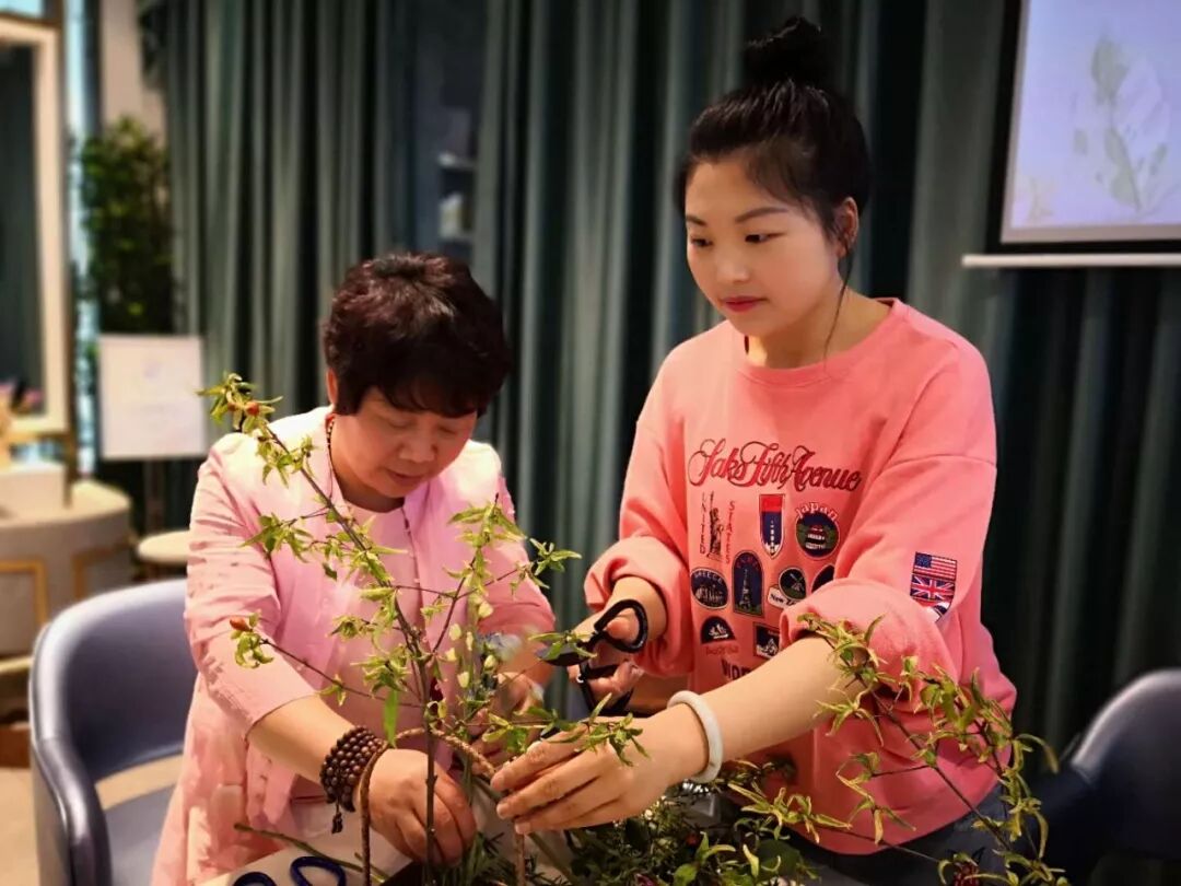 最后大家体验了中式插花,是中国传统艺术之一。中国插花讲究"师法自然,天人合一"。创作者将情感注入作品中,借花抒情,以景传神,以达到情景交融,形神兼备的最佳艺术境界。花材、容器、几架是构成插花艺术的重要元素,不同的寓意的花,不同质感的容器,不同造型的几架,都要求三位一体、和谐统一。